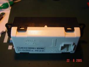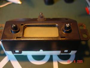 To remove the center front panel you must first remove the radio. Then you must remove the four screws underneath the radio and gently pull the panel back. Remove the connectros of the hazard flasher and the clock by depressing the plastic tabs of the connectors. There are two screws holding the clock in place. Remove them and take the clock module out. By gently releasing the four tabs (two of them are shown on the picture above right) take the clock apart. Then remove the circuit board (be careful and gentle!).