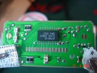 Now is time for the blue LED modification of the 6006 headunit and the digital clock. In the clock there are two green and one red SMD LED’s. In the 6006 panel there are 27 green, one red, one IR LED’s. One photodiode and two green side mounted SMD LED’s.