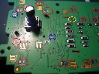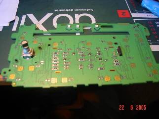 This is the result of three hours work… One hour for de- and resoldering. Two hours for finding out the polarity of the LED in the yellow circle!