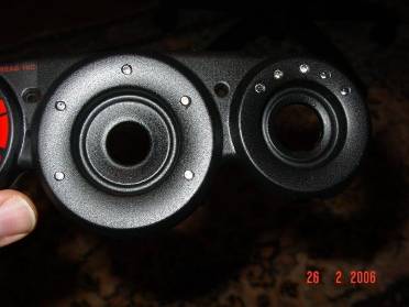 removed. For the left knob, I have soldered two high intensity white LED’s